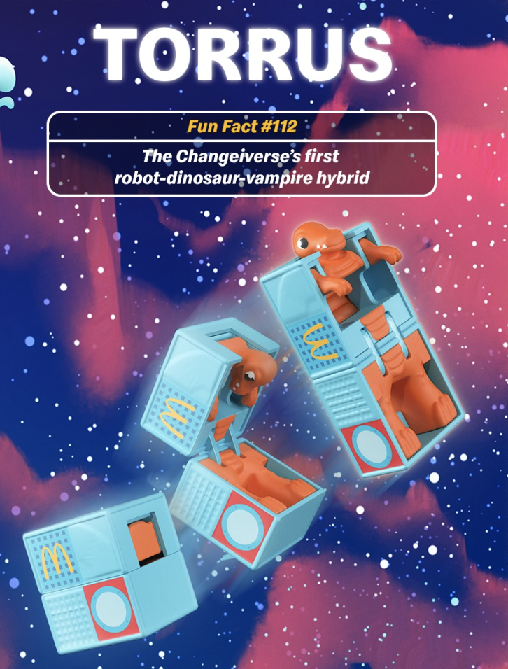 Just to catch you up on a little McDonald’s Happy Meal toy history — Changeables were a series of toys released between 1987 and 1990 that loosely resembled Hasbro’s Transformers. The difference is that these were McDonald’s products that would turn into robots, dinosaurs, etc.