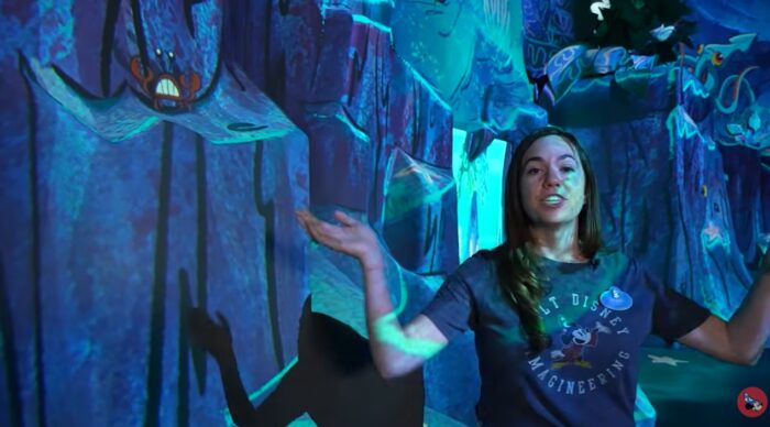 The scenes in the actual ride are also firsts for Disney Imagineers. For example, Imagineers demonstrated how they used projections combined with UV light to create the first scene, as well as other scenes in the ride.