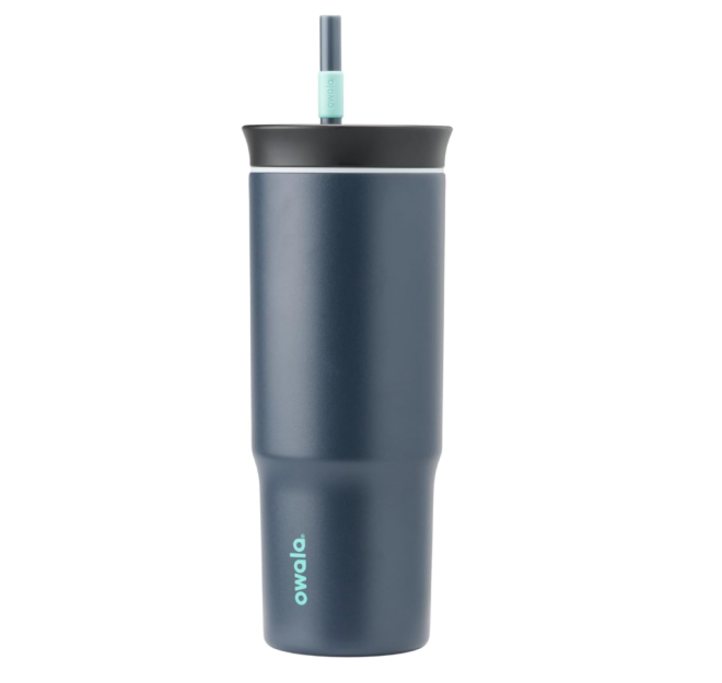 The Owala Stainless Steel Triple Layer Insulated Travel Tumbler is 24 ounces with a spill-resistant lid and straw. It has double-walled insulation to keep your drinks cold for longer. Get the gray Foggy Tide color for 20% off.