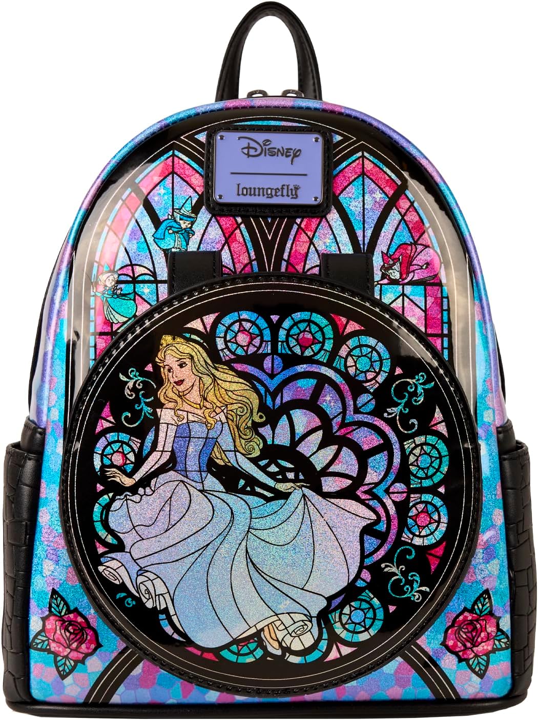 Take a look at this Sleeping Beauty Loungelfy Backpack! The mini backpack features Princess Aurora from the Disney classic animated film, Sleeping Beauty, in a stained glass window design.