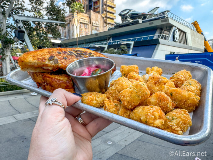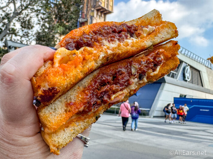 The bread texture is also good and doesn’t turn into a soggy mess, even with all that sauce. We also liked the pickled onion and cucumber salad with its crunchiness and tanginess. It’s not the best grilled cheese in Disneyland, but it’s still tasty.