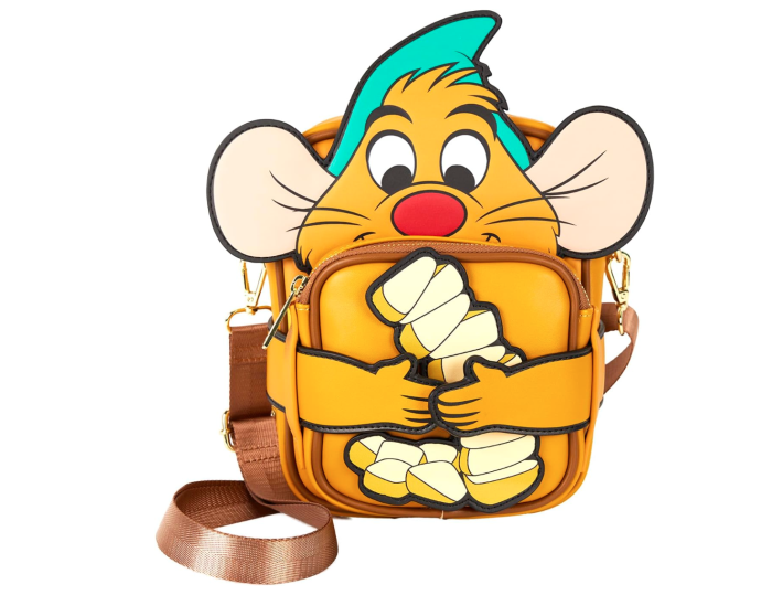 One of the cutest crossbody options out there right now is this Loungefly Disney Cinderella 75th Anniversary Gus Crossbuddies Bag.