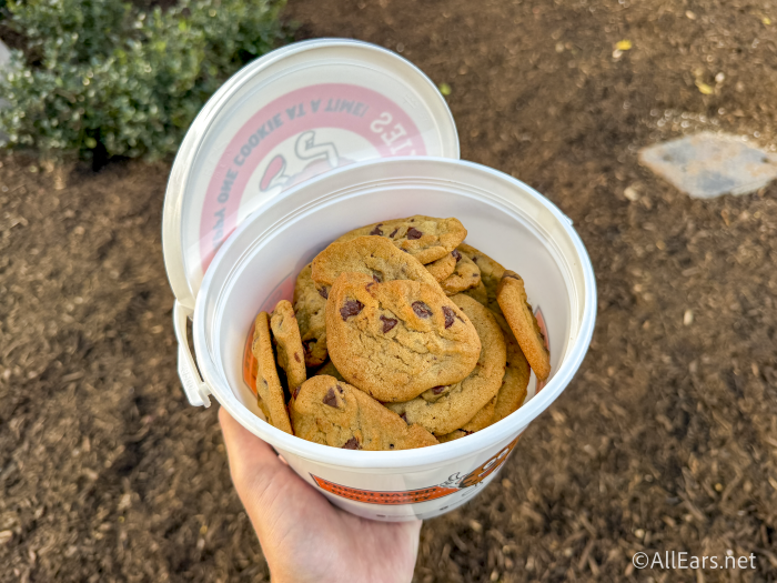 Cathy’s Cookies stand is now open at Downtown Disney — and you can literally get a BUCKET of cookies! If there is one thing we love more than fresh-baked cookies, it is a bucket of fresh-baked cookies.