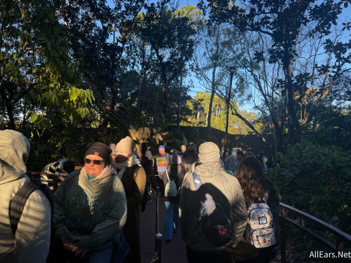 We were looped around outside for half an hour! In the cold! We absolutely love DINOSAUR and are glad we said goodbye, but seriously – if you’re headed to Animal Kingdom today, bring jackets and a hot drink, it’s cold!