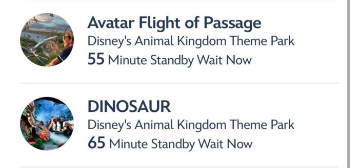When we checked at 11:30, DINOSAUR was up to a 200 minute wait! For reference, the second longest line at the time was Na’vi River Journey at 65 minutes.