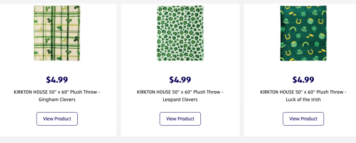 Plus some awesome St. Patrick’s Day decor! There are some blankets…