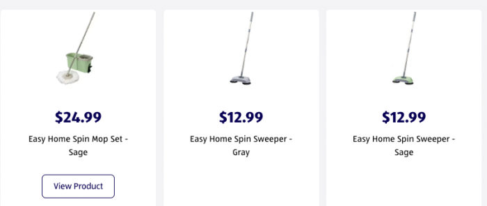 A spin mop and sweeper,