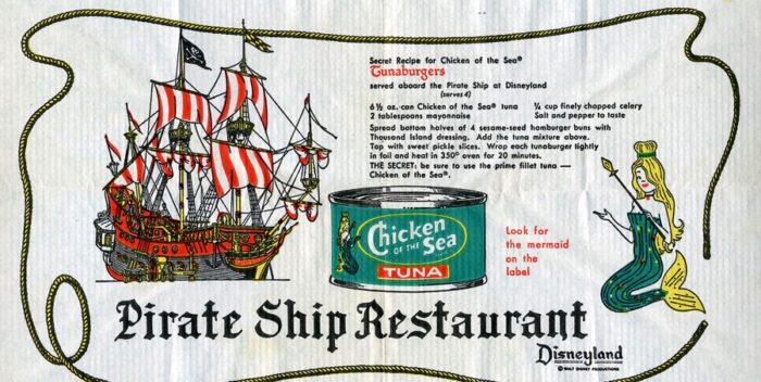 During Disneyland’s early years, the park was home to the Chicken of the Sea Pirate Ship Restaurant. Sponsored by the titular company and housed in a to-scale replica of Captain Hook’s ship, this restaurant offered a menu of pretty much all tuna items. Not something we’d like to see today, but nothing dystopian about it, right?