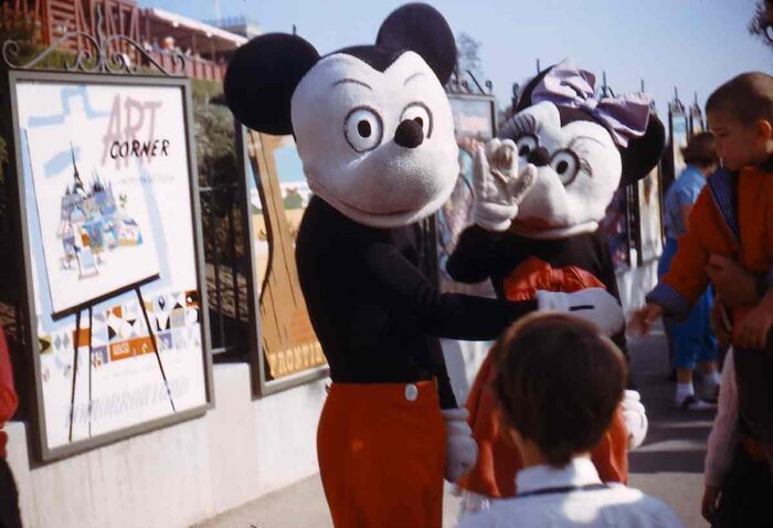 If you polled Disneyland visitors about what the most famous experience one could have in the park is, many would likely answer “meeting Mickey Mouse and the rest of the characters” first (or second, behind waiting in lines), so it makes sense that costumed versions of Mickey and co. have been there from the beginning. Though not exactly how they look today…
