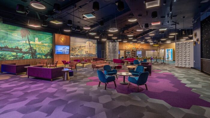 As you might expect, the lounge is themed to America’s West and even has a cozy stone fireplace and plenty of wood accents.