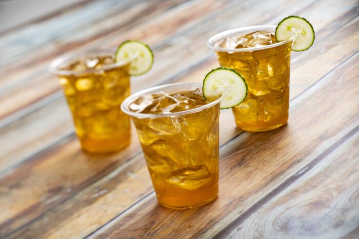 • Botanical Slush: Twinings Mango & Pineapple Herbal Tea, Minute Maid Passion Fruit Orange Guava Juice, Simply Fruit Punch, and simple syrup with Cruzan Mango Rum