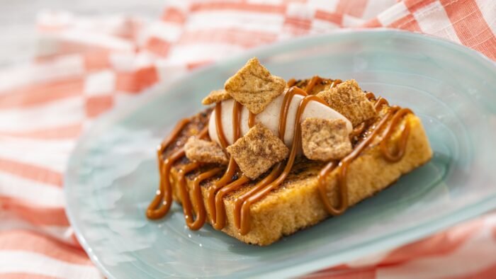 • French Toast with cinnamon cereal cream and caramel sauce (New)