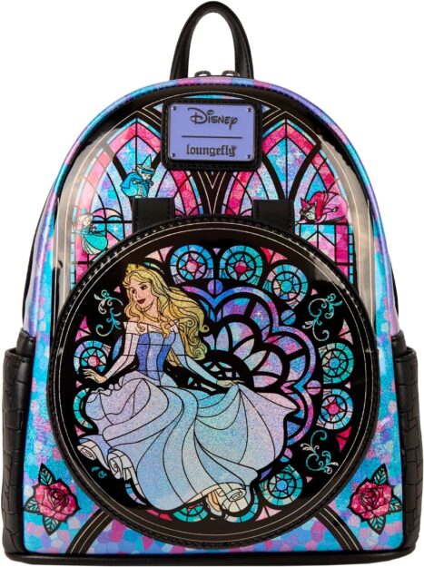 Next, we’ve got the Loungefly Disney Princess Stained Glass Sleeping Beauty Mini-Backpack.