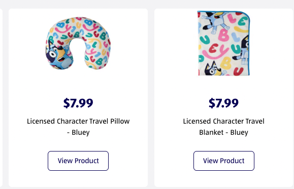 If you have a long journey ahead of you, these matching travel neck pillow and blanket sets will be your new best friend. You can get them in Bluey…