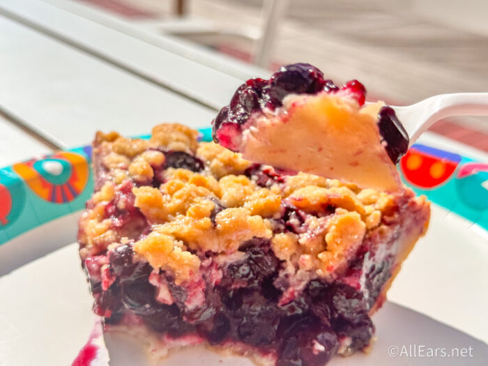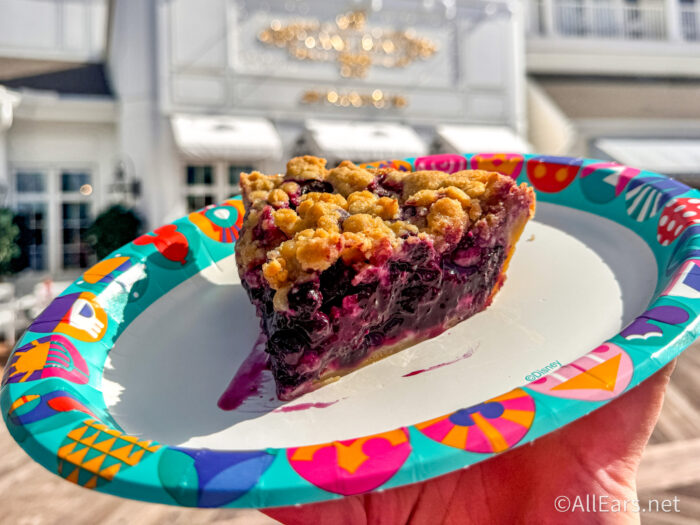 The pie comes served in a paper box with no plate, and it is MESSY. The blueberry juice was oozing all over the place — thankfully, we were able to grab a plate from BoardWalk Deli nearby.