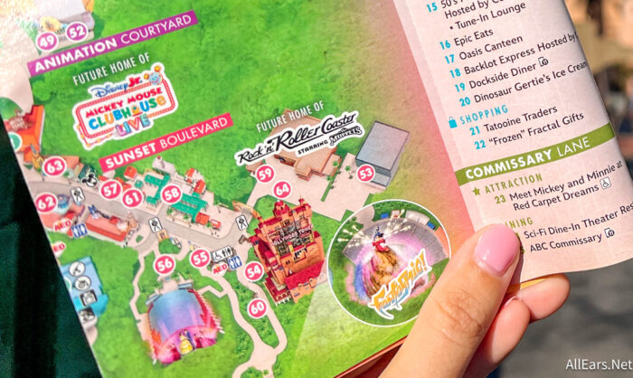 The new park map reads “Future home of Rock ‘n’ Roller Coaster Starring The Muppets” above the building. The neighboring Villains show, food truck KRNR The Rock Station, and the merchandise booth outside will all stay open during the closure, from what we can see listed on the map.