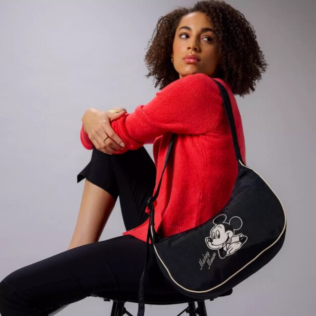 This Mickey Mouse Crescent Bag features a Mickey Mouse appliqué with an