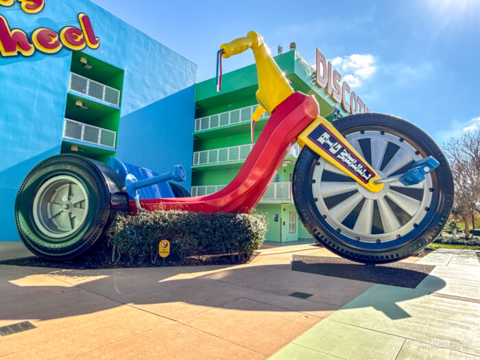 This Value Resort celebrates the fads, music, toys, and trends of the 1950s through the 1990s, with over-the-top theming that makes it feel playful and energetic from the moment you check in. Guests love the larger-than-life icons, dedicated decade sections, the Hippy Dippy Pool, and, maybe most importantly, its access to the Skyliner. That Skyliner access is one of Pop Century’s biggest selling points, but it can also create a late-night transportation dilemma if you’re not careful.