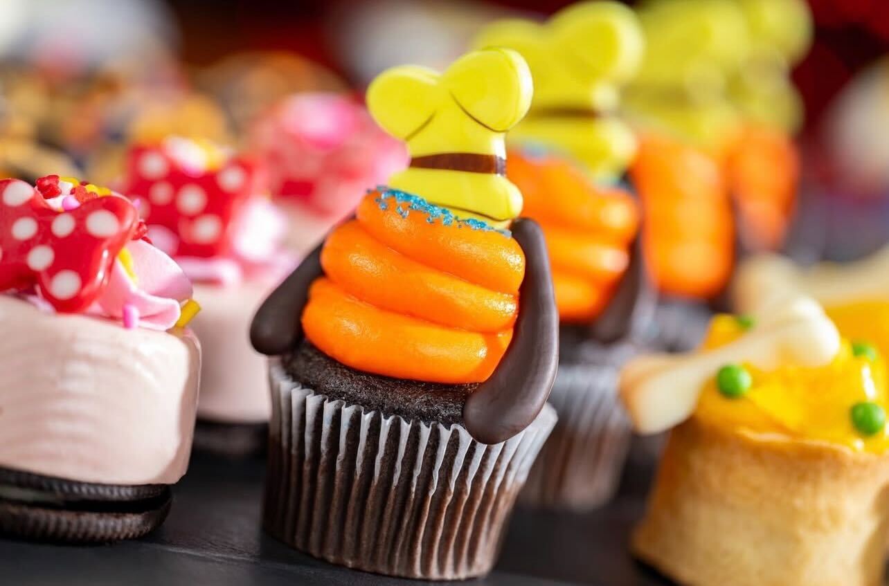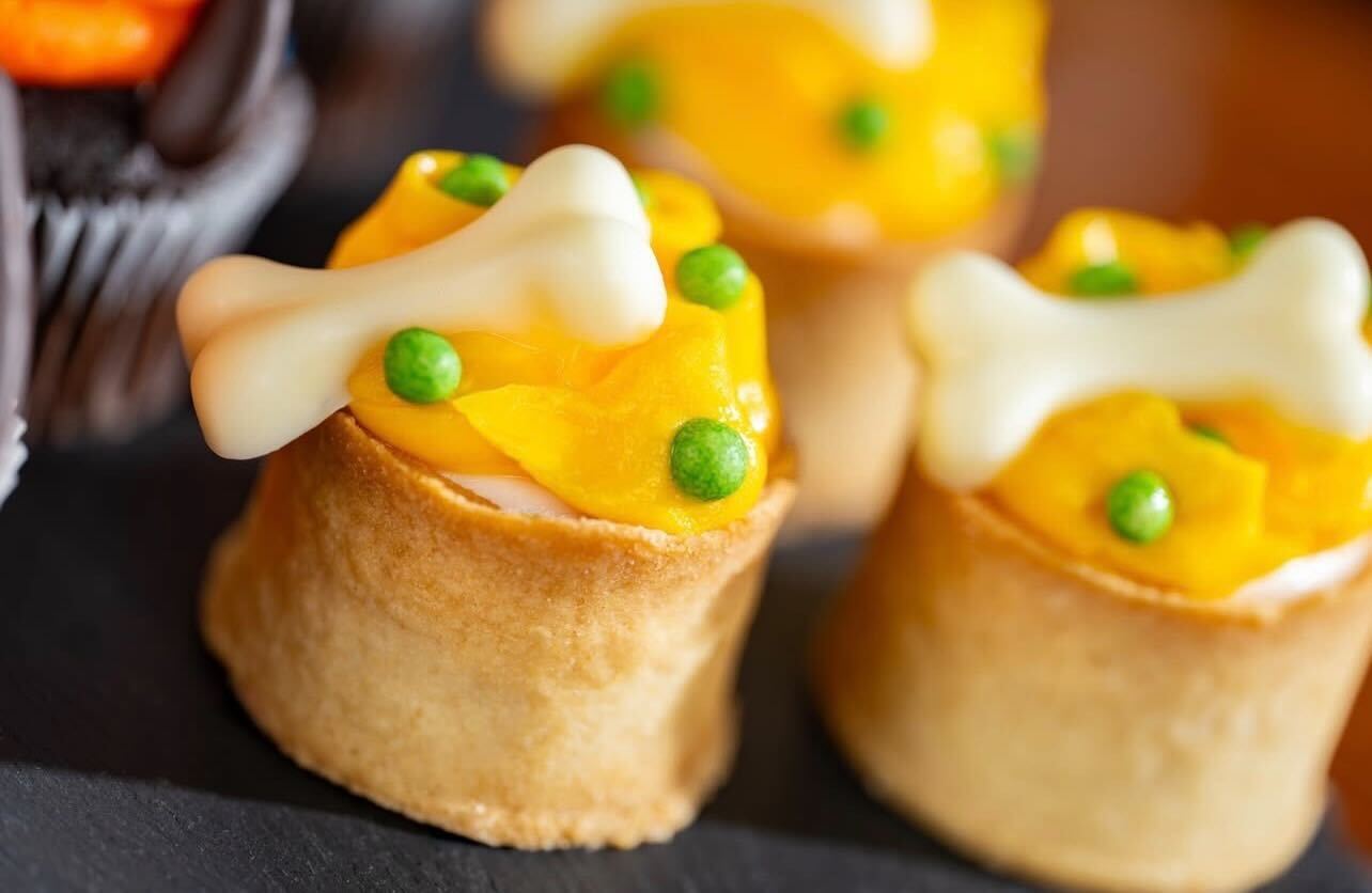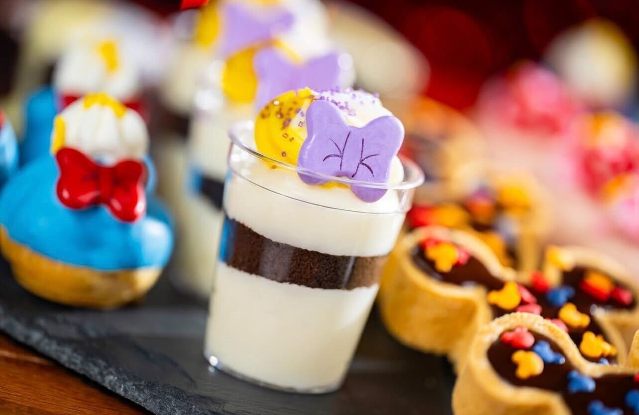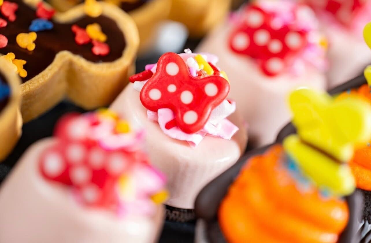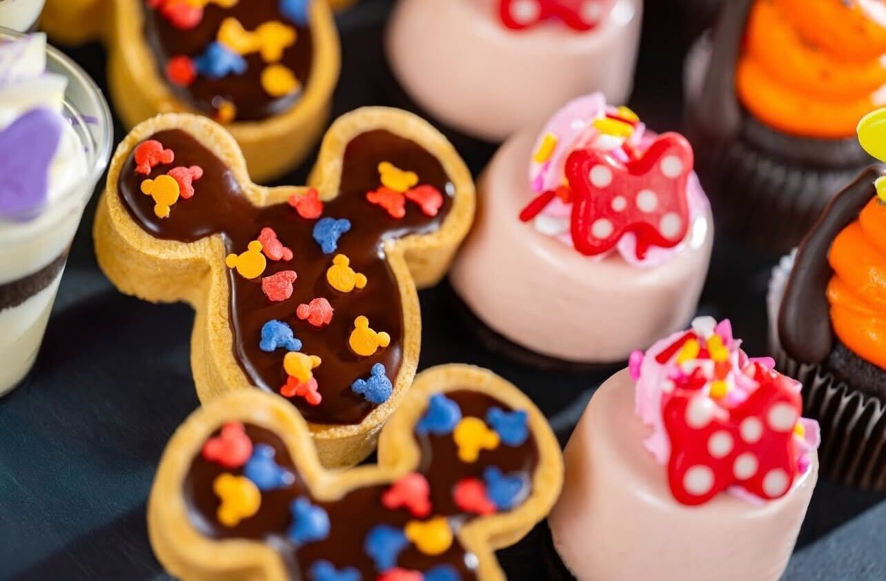 The Mickey Mouse Tarts filled with cookies and cream mousse look unbelievably delicious. There are little Mickey-shaped sprinkles on the Mickey-shaped treats.
