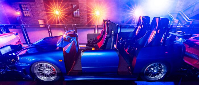 The next ride vehicle is Brian O’Conner’s 2002 blue Nissan Skyline GT-R. In the films, this car was enhanced with extensive performance and styling modifications, which gave it an iconic appearance.