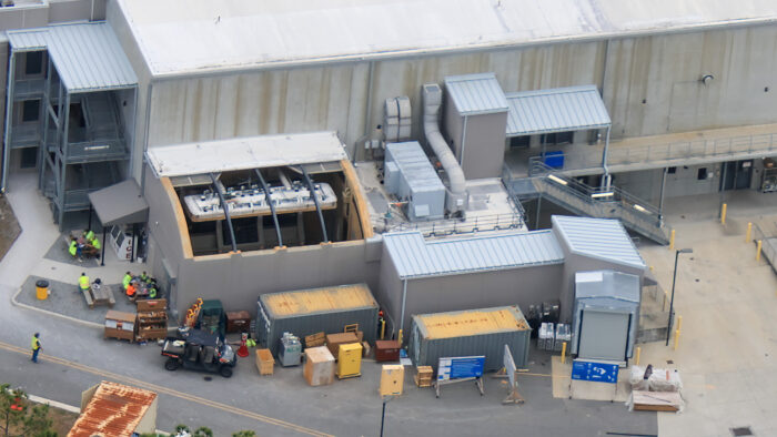 Here’s what the exterior of that space looks like now. As you can see, there are plenty of construction workers on site. If we had to guess, the climate simulator may stay mostly intact and become a sort of break space for Imagineers. At least that makes the most sense on how to utilize that area.