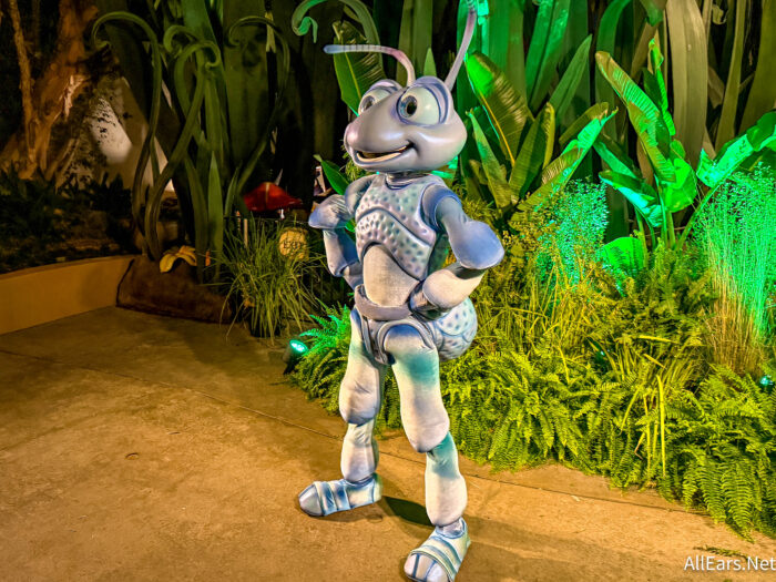 The character we were most excited to meet was Flik from A Bug’s Life. We love seeing him in the parks, and yes, we’re still mourning the loss of A Bug’s Land (which closed in 2018).