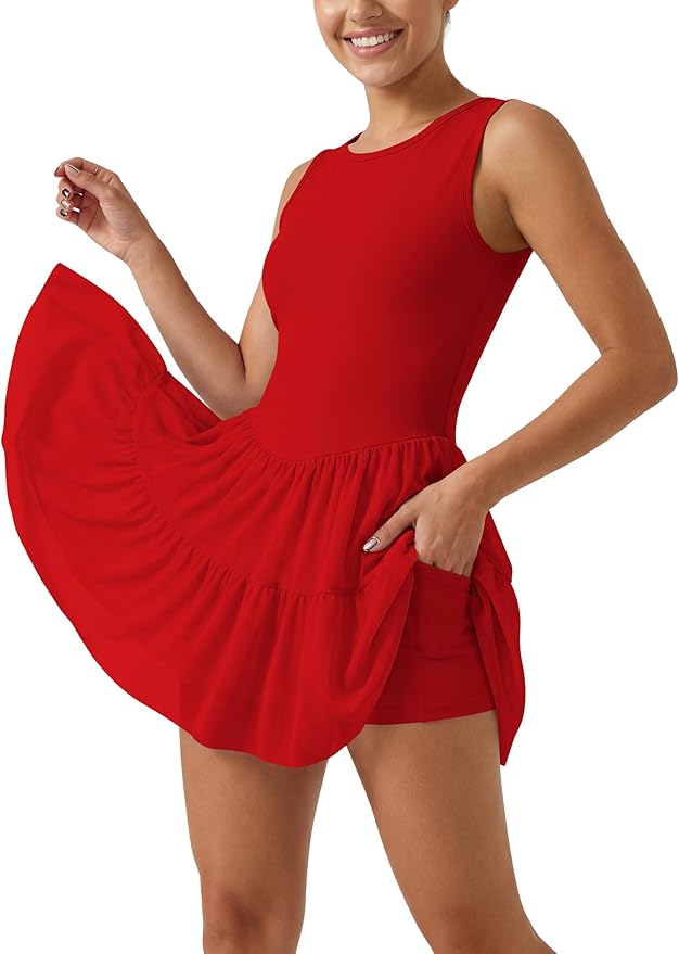 This Tennis Dress is made from a soft, moisture-wicking, and elastic fabric that’s lightweight and durable. The fitted top has great coverage for bending down, and the pleated skirt has easy-to-access pockets!