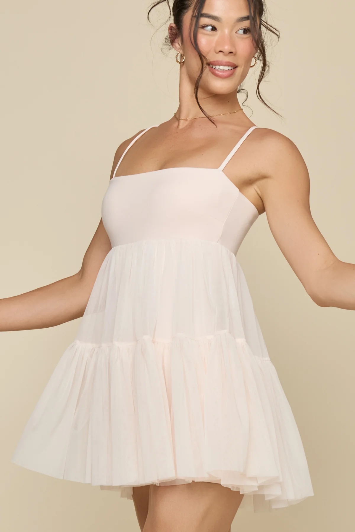 The Pirouette Babydoll Dress is so pretty! The tiered, petticoat-inspired circle skirt gives it such a unique silhouette. It comes in nine color options, and the fabric is lightweight while still being opaque in white or pastel colors!