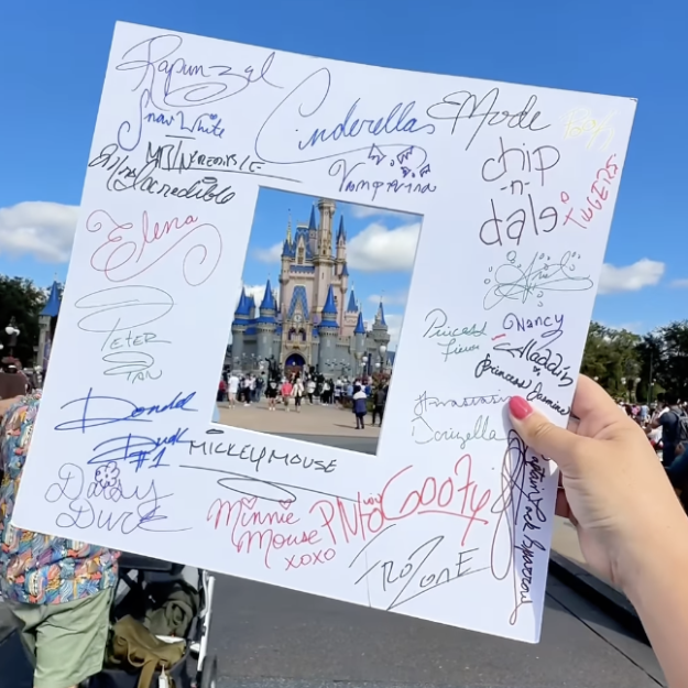 Just take the mat out of the frame, take it to the parks, and get your favorite characters to sign it. Then you can put your favorite Disney photo in the middle, and you’ve got a VERY cool souvenir.