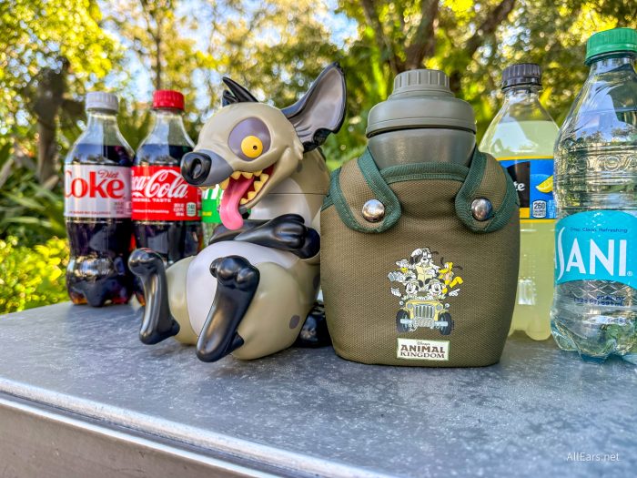 Over in Disney’s Hollywood Studios, the Monsters, Inc. Scream Canister Popcorn Bucket costs $28 (plus tax) and lights up! You can see how many screams are in the container and even hear them! We grabbed ours from a popcorn cart on the corner of Hollywood and Sunset Boulevard, and we also noticed that they are at other popcorn carts, as well.