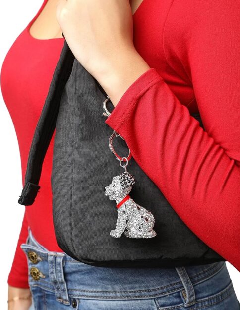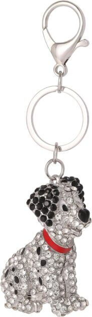 Now this looks, designer! The keychain is one of the dalmations, completely covered in crystals. I love the details of his red color, his black spots, and his nose. It’s perfecg ot add to a handbag or backpack.