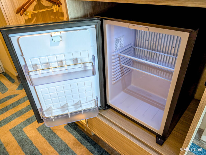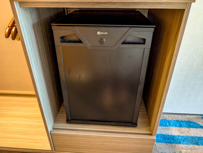 The staterooms also have a mini fridge (not a beverage cooler, YAY!).
