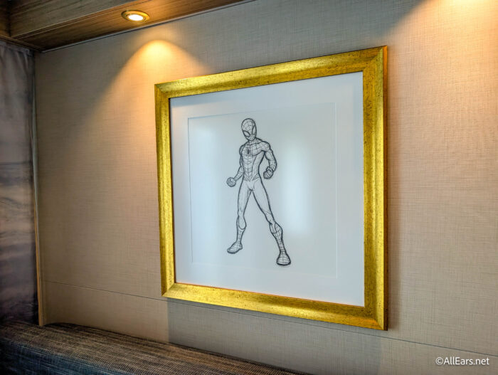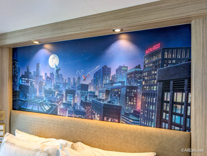 We ended up in a Spider-Man themed room, so there’s art of the famed hero saving the city above the bed.
