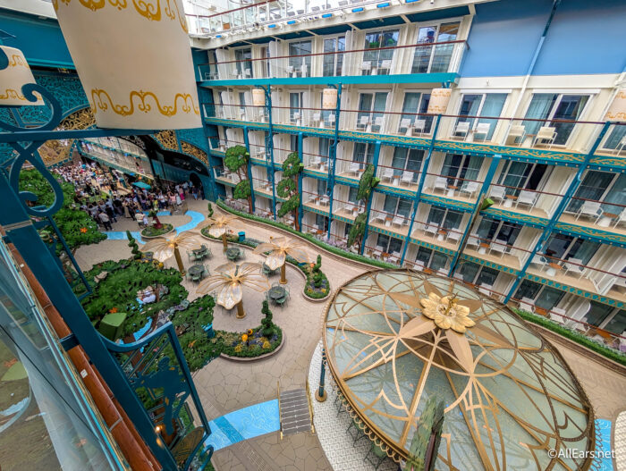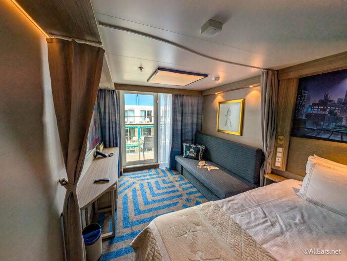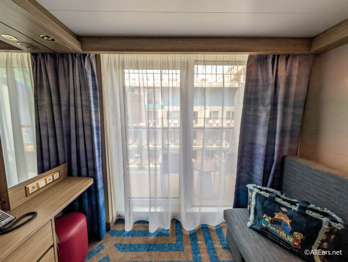 A Deluxe Garden View Stateroom with Verandah on the Disney Adventure is pretty unique in that it features gorgeous views of the Disney Imagination Garden. This is one of the ship’s main gathering areas that is home to live performances and character encounters. This is where a LOT of the action happens!