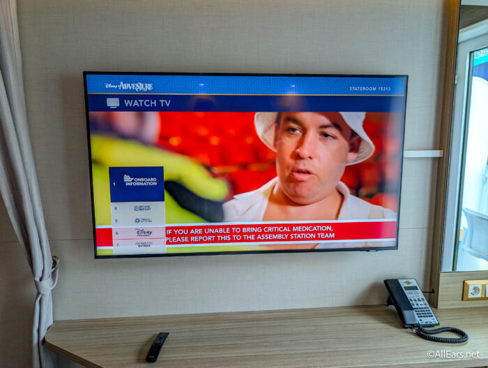 The TV has some ship-specific programming as well as basic channels. We like to check out the Onboard Information channel to see what info they’re sharing!