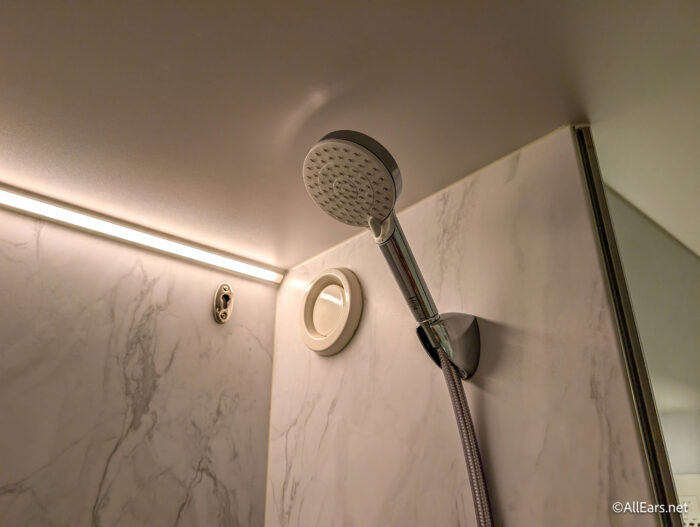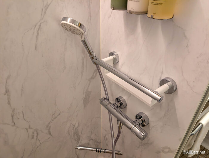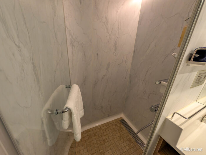 The walk-in shower was a decent size for a cruise ship and it has some lovely marble-like walls.
