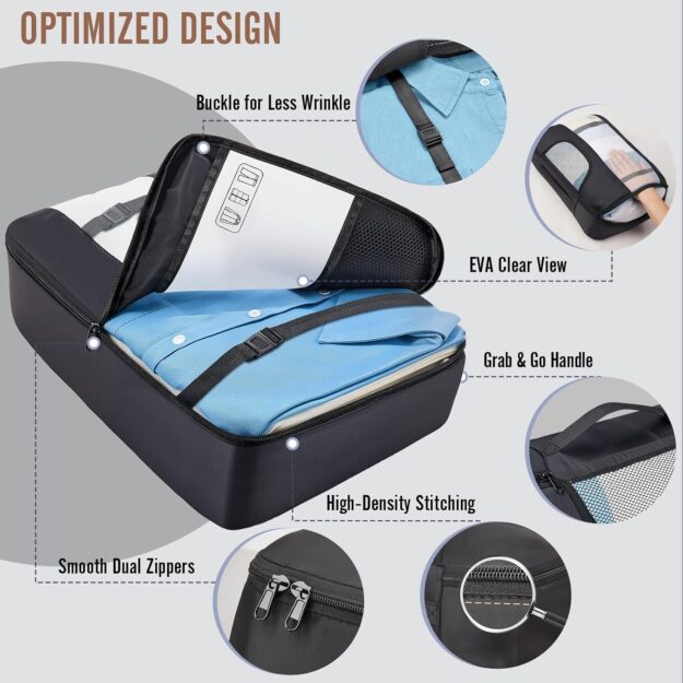 If you’re someone who likes to unpack in hotel rooms, these bags also make it easy to pick up and move to the drawers while still staying organized.