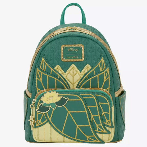 Princess Tiana’s iconic dress is captured in all its glory in this Princess and the Frog Loungefly.