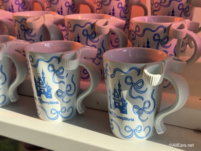At the same time, you’ll also be able to purchase the companion Starbucks Disney World Mug! These smaller cups feature the same design, but also come with a ribbon handle built in.