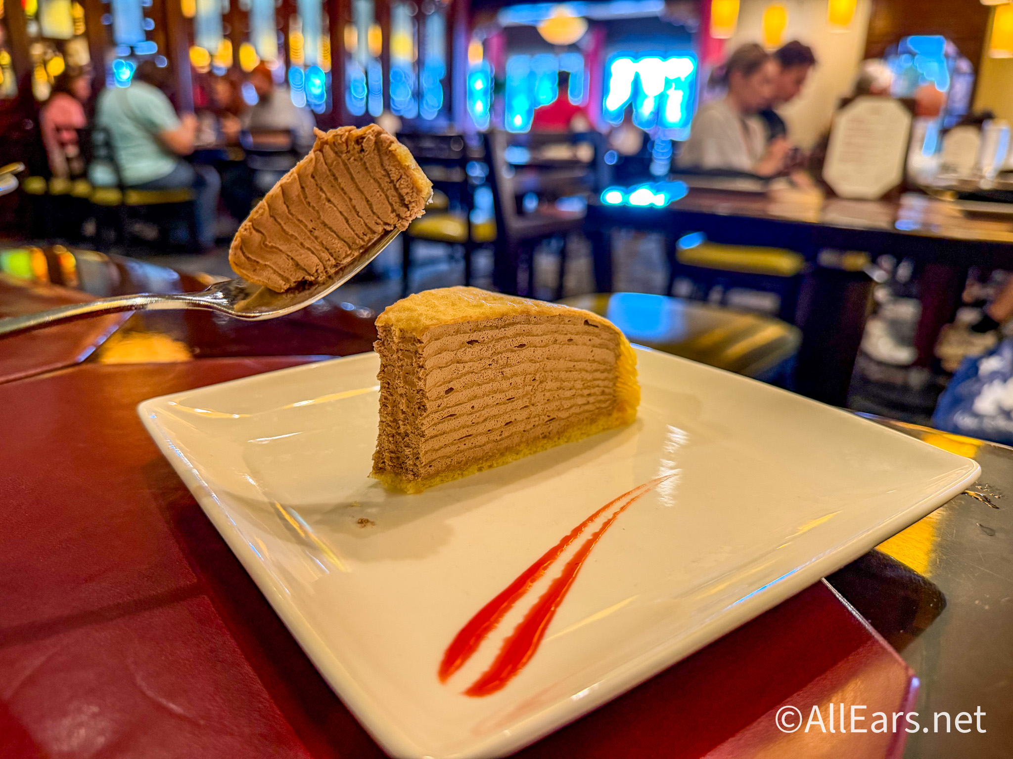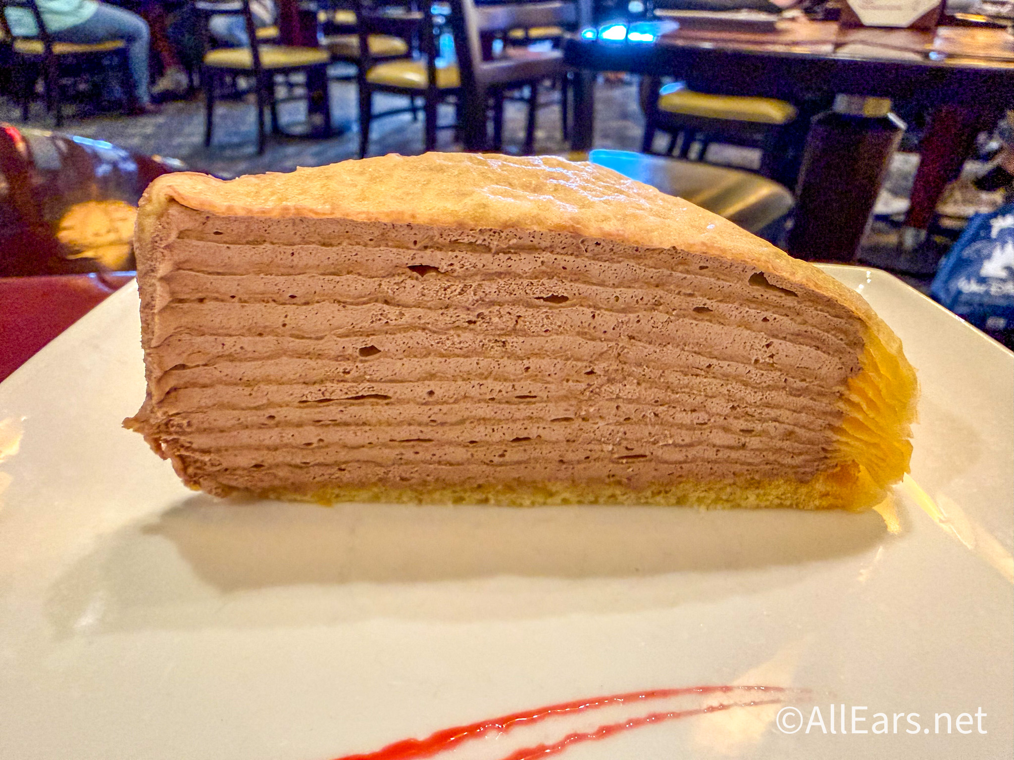 You’ll eat it very quickly because it is still good and it’s very easy to eat. To be honest, we just thought we were expecting a little more. It’s essentially just light chocolate mousse in between crêpes.