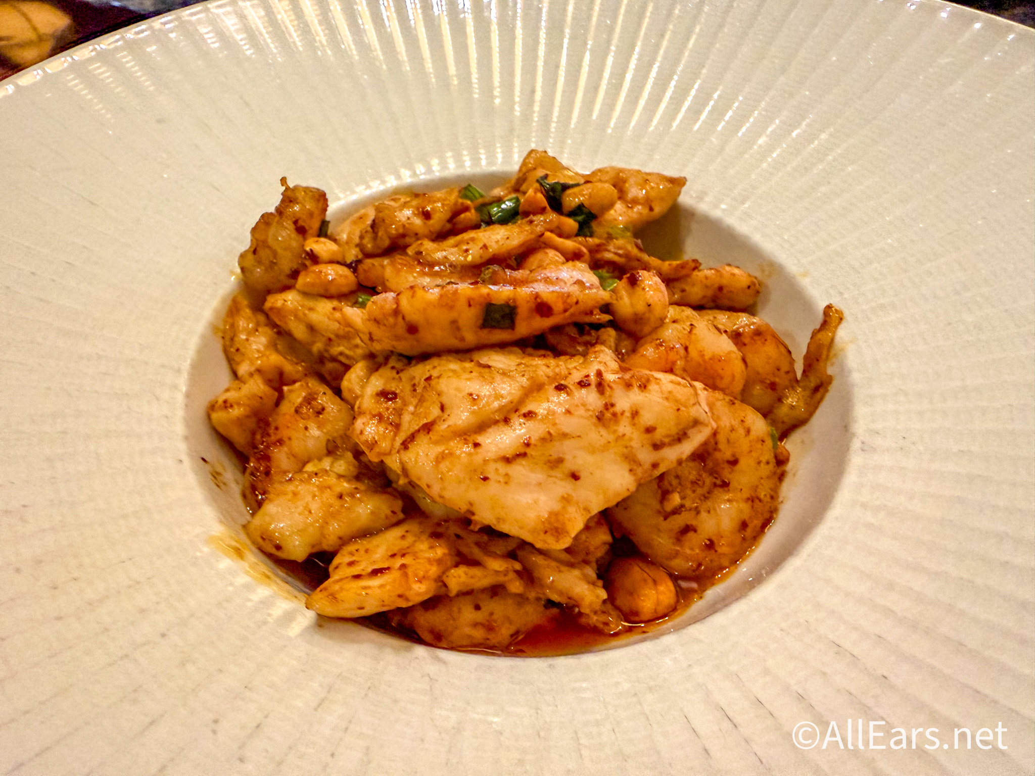 The chicken is also great in texture — just a firm bite. The Peanuts give it a unique flavor, which pairs nicely with the chicken and the shrimp, which gives you a lot of meaty flavor.