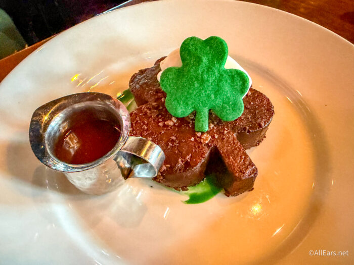 Time for dessert! The Brownie Dazed is a decadent warm chocolate brownie served with vanilla ice cream, whiskey caramel sauce, and a shamrock sugar cookie. This is a super SWEET dessert, especially if you add the ice cream and caramel sauce into the mix. It was so soft it was almost mushy, but that didn’t bother us in the slightest — if you love chocolate, this is for you!