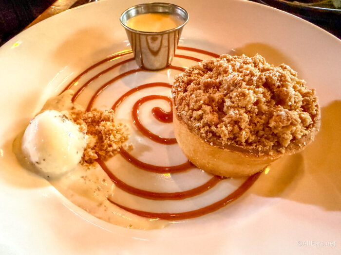 The other dessert available is the Crumble at Will, which is a classic baked apple crumble with thick custard, rich caramel sauce, and house-made brown bread ice cream. The crust of this apple pie was VERY hard to break into, so we personally recommend scooping out the apple pie interior and eating that first, then the crust after, because otherwise, it makes a pretty big mess. If you’re a fan of traditional apple desserts, this will likely be the right fit for you.