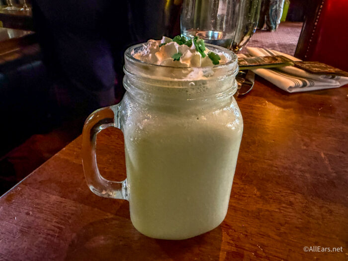 As for drinks, we got to try the Minty Baileys Shake, which is Baileys Irish Cream liqueur and peppermint schnapps blended with vanilla ice cream, topped with fresh whipped cream and shamrock sprinkles. This is a nice, refreshing dessert drink, as it’s not too sweet, and the mint flavor isn’t too overpowering either. We think the Baileys helped with that, but part of us does wish there were a version without the Baileys available so kids and those who don’t drink can enjoy it as well!
