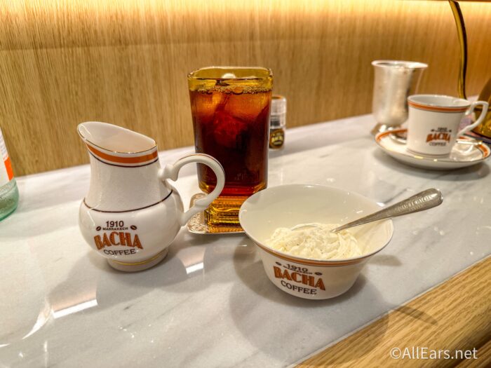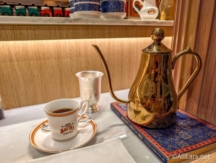 The Cast Members were so knowledgeable about the options and gave recommendations based on guests’ favorite coffee types and flavors. Quincy grabbed a Hot Coffee that came in a gooseneck gold kettle.