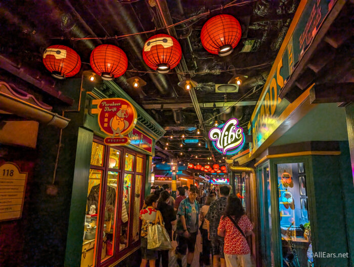 Looking for a lively spot with loads of energy and Disney theming? San Fransokyo Street totally took my breath away, and I think it’ll do the same for you. This whole area is inspired by the fictional city from Big Hero 6, and is where you’ll find the tween and teen clubs, Edge and Vibe, both disguised as shops on the square.