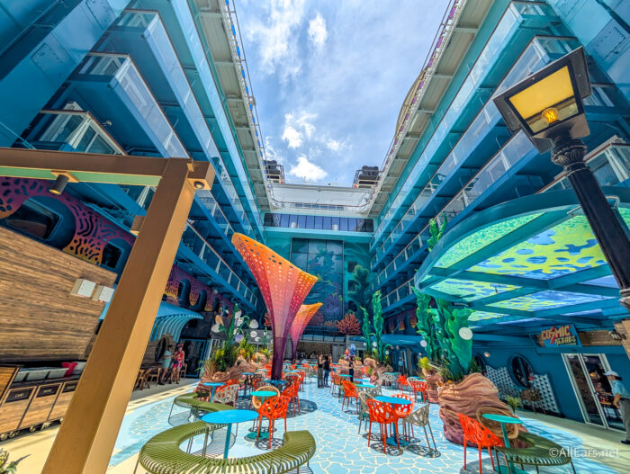 As for dining and additional entertainment, you’ll find Cosmic Kebabs, Bewitching Boba and Brews, Taverna Portorosso, Palo Café, Palo Trattoria, and Mike and Sulley’s Flavors of Asia. Even if you’re not planning on dining at any of these spots, it’s a must-visit.