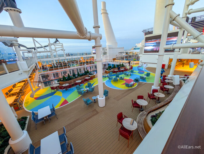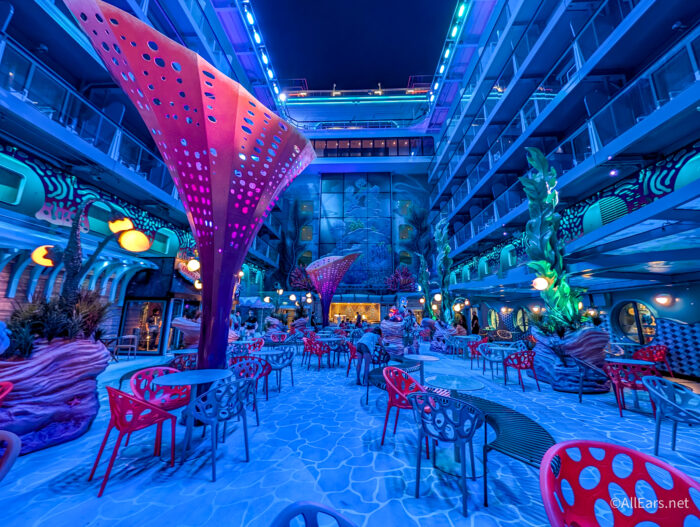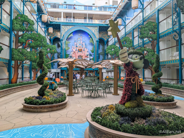 In the very center of the ship, you’ll find the absolutely stunning Disney Imagination Garden. The courtyard itself is decorated beautifully, but then there’s also a stage in the area that you can watch different shows on, like the Let’s Set Sail dance party, Avengers Assemble!, and Duffy and The Friend Ship.