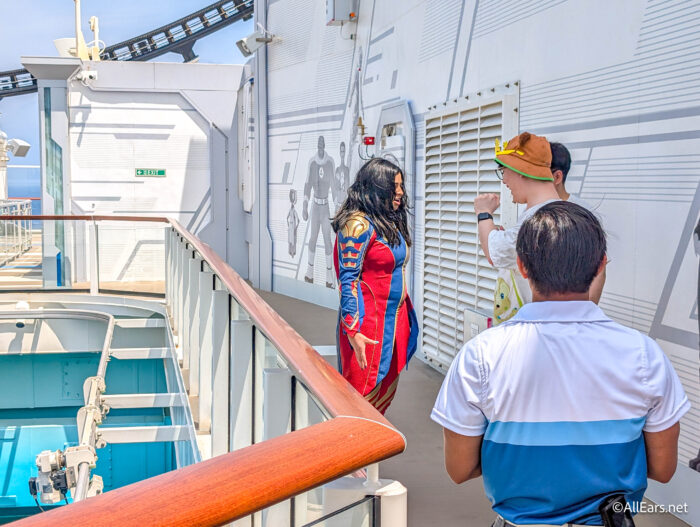 We got to see Ms. Marvel, AKA Kamala Khan, who we don’t get to see often at all, so this was such a special treat for us. If you’re looking for lots of thrill, though, you’ve gotta check out the three rides (yes, ACTUAL rides) on board — Groot Galaxy Spin, Pym Quantum Racers, and Ironcycle Test Run (the first roller coaster ever on a Disney cruise!).