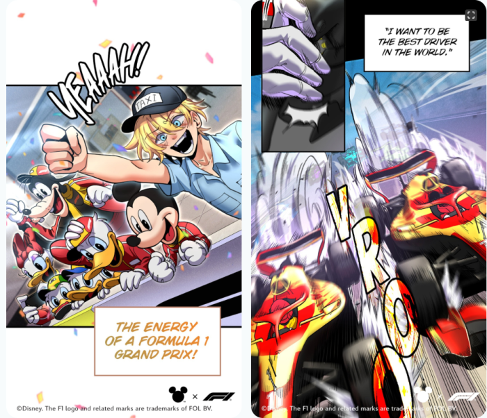 Disney has also teamed up with WEBTOON to create a new vertical comic series called “Mickey x F1 Racing to the Top!” The series can be found EXCLUSIVELY at WEBTOON with new episodes dropping throughout the race season. In this new series, Mickey, Minnie, Donald, and Goofy are coming together to help a racing team.
